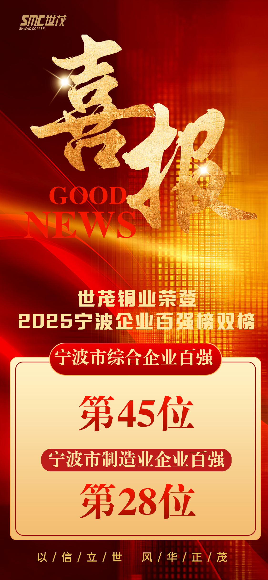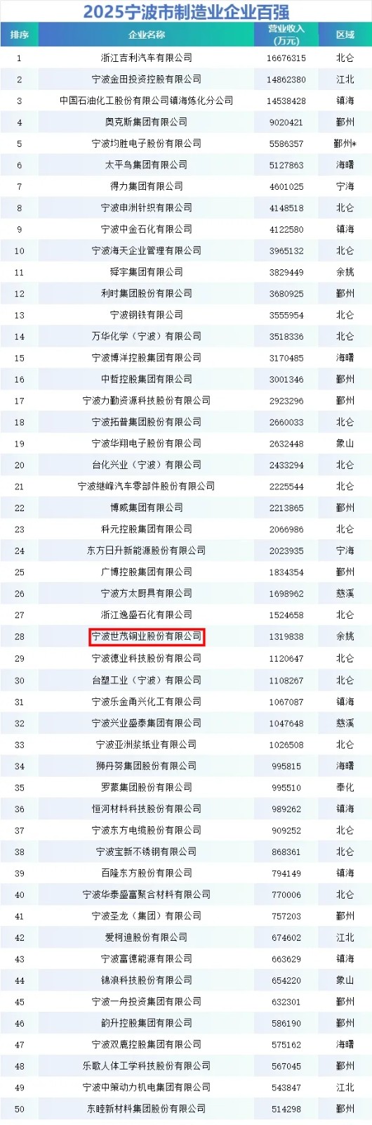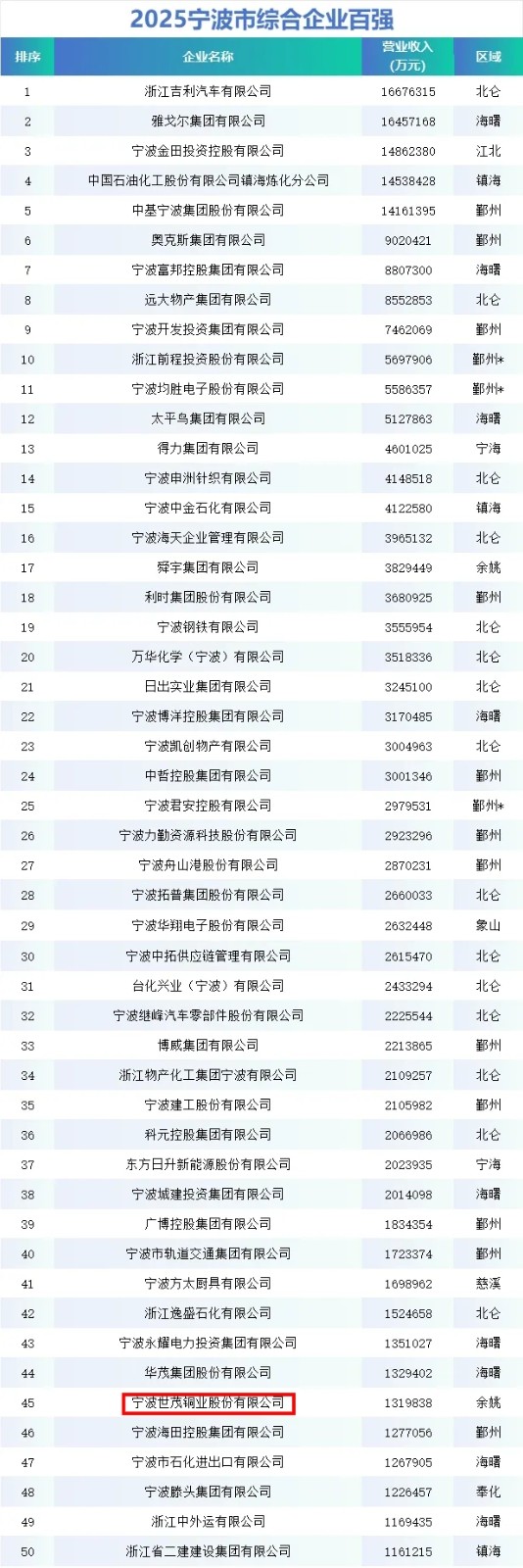 世茂铜业再度蝉联宁波“双百强”,营收超百亿彰显制造实力!